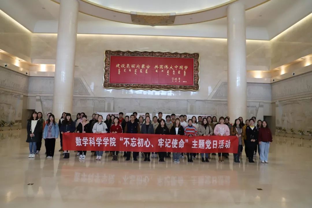 2019年10月19日,太阳成集团tyc122ccvip数学与应用数学员工党支部、信息与计算科学员工党支部共同开展“不忘初心,牢记使命”主题党日活动。数学与应用数学员工党支部书记皮建东,信息与计算科学员工党支部书记李帅、信息与计算科学员工党支部委员阿如罕带领公司本科生党员、预备党员参观乌兰夫同志纪念馆、内蒙古博物院。