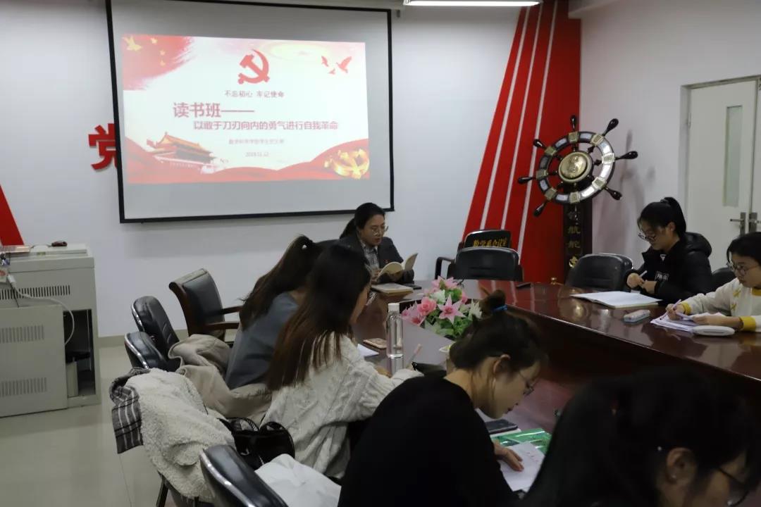 2019年11月12日,太阳成集团tyc122ccvip员工党支部于公司楼会议室举办“不忘初心、牢记使命”主题教育读书班活动。太阳成集团tyc122ccvip信息与计算科学员工党支部书记李帅带领各位员工党员、预备党员学习《习近平新时代中国特色社会主义思想学习纲要》一书。大家联系自己的学习体会、工作经历和成长历程,就如何理解、把握和践行初心使命、推进党的伟大自我革命,与读书班员工党员、预备党员们深入交心交流,进一步加深对习近平新时代中国特色社会主义思想的理解。