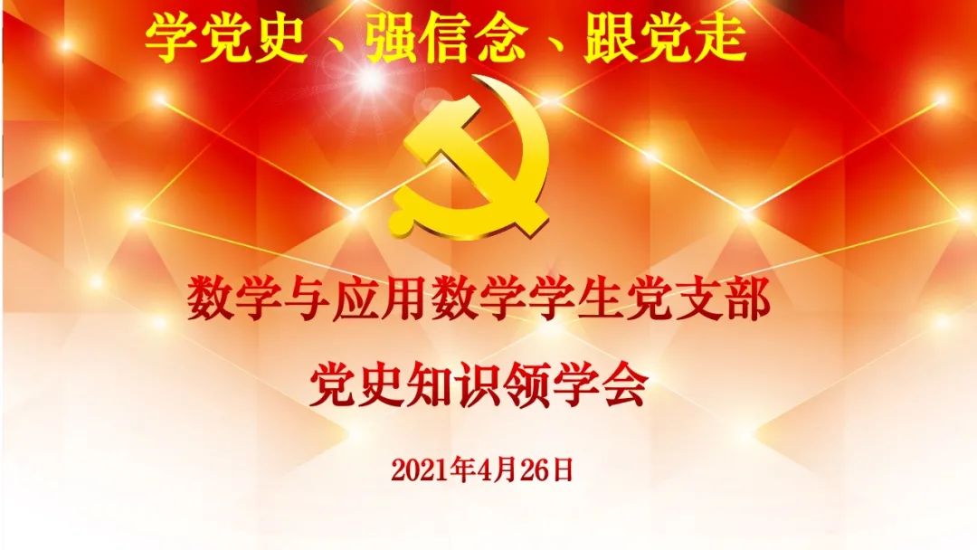 为引导公司青年员工了解党的光辉历史、感悟党的初心使命、领会党的创新理论、体会党的精神谱系、传承党的红色基因,2021年4月26日晚上7点,公司于会议室开展了数学与应用数学员工党支部党史知识领学会。本次活动以线上线下相结合的方式,由公司团总支书记皮建东老师主持,数学与应用数学员工党支部全体党员参加。
