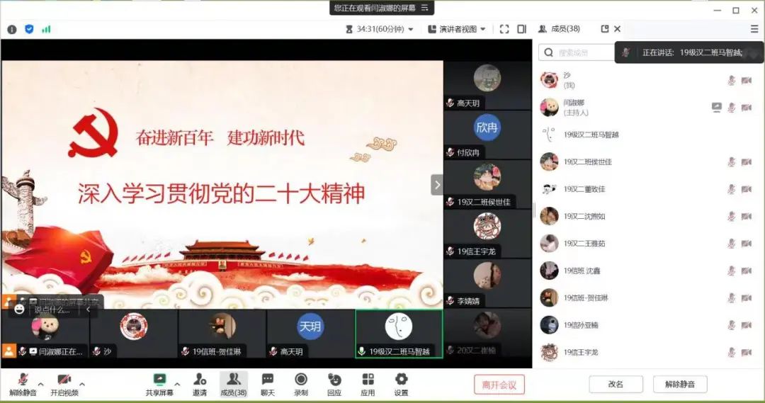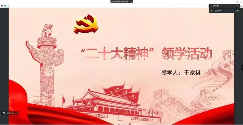 太阳成集团tyc122ccvip员工第一党支部开展了党的二十大精神领学活动,由于家祺同学领学,在领学内容中强调,同学们要深入学习贯彻习近平新时代中国特色社会主义思想,在新时代伟大实践中不断开辟马克思主义中国化时代化新境界。