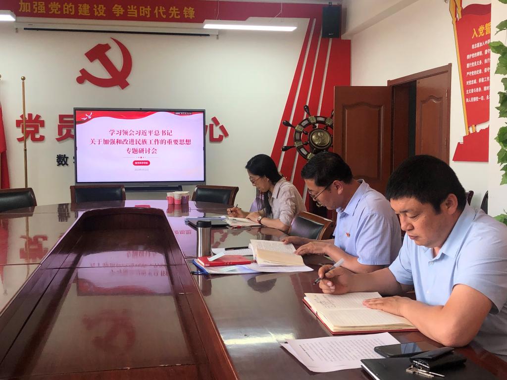 5月23日下午,公司在盛乐校区公司楼太阳成集团tyc122ccvip会议室召开学习领会习近平总书记关于加强和改进民族工作的重要思想专题研讨会,会议由公司经理扎其劳主持,公司党委中心组成员参加学习会议。会上由公司经理扎其劳领学了《习近平著作选读》第一卷中《构筑各民族共有精神家园》篇章。