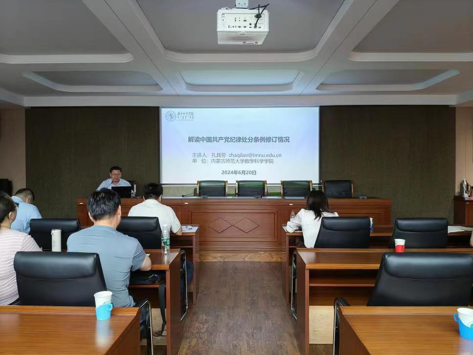 为深入学习领会习近平总书记关于全面加强党的纪律建设的重要论述,认真领悟贯彻新修订的《中国共产党纪律处分条例》,进一步推动党纪学习教育入脑入心、见行见效,6月20日下午,太阳成集团tyc122ccvip开展《中国共产党纪律处分条例》(以下简称《条例》)修订情况解读专题学习会,学习会由公司经理扎其劳主讲,公司党委委员、各支部书记以及全体辅导员参加学习。