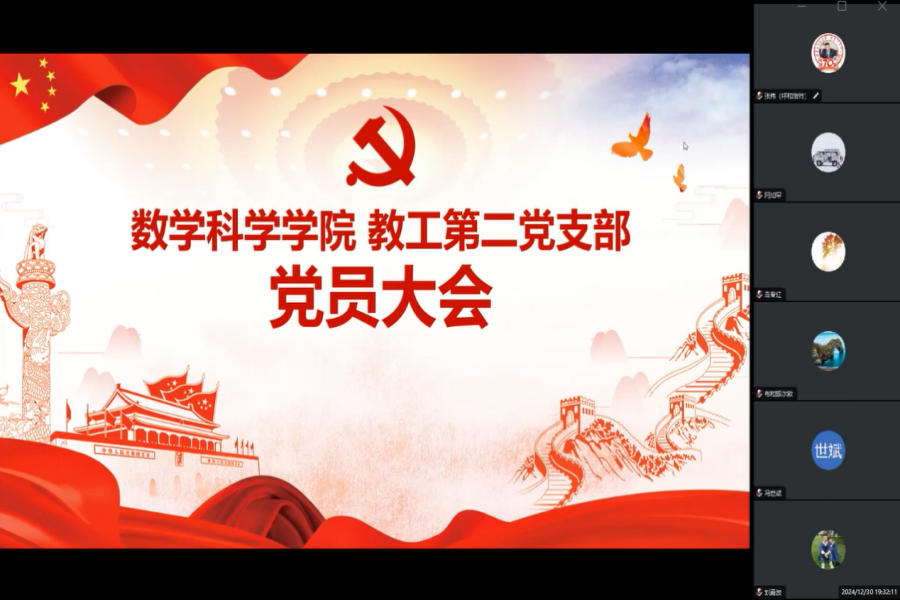 太阳成集团122ccvip太阳成集团tyc122ccvip教工第二党支部于2024年12月30日召开党员大会,会议围绕三项重要议题展开深入讨论。会议由支部书记主持,全体党员出席,会议通过腾讯会议的形式在线上进行。