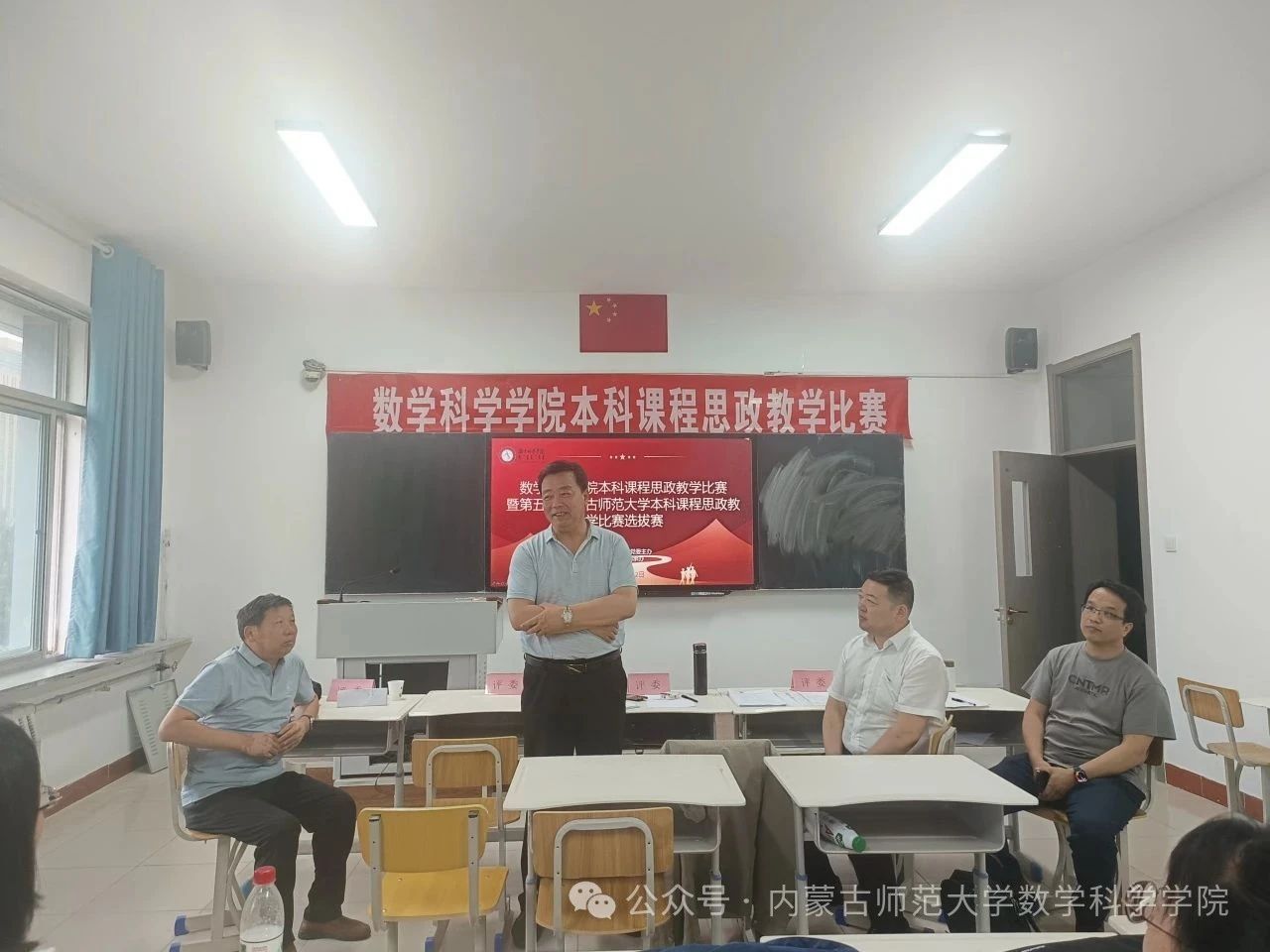 为深化课程思政建设,提升教师思政教学能力,6月12日下午,公司党委主办、教工一支部承办了公司本科课程思政教学比赛暨第五届太阳成集团122ccvip本科课程思政教学比赛选拔赛。本次赛事紧扣“思政育人”核心理念,为全院教师搭建了课程思政建设的交流实践平台。比赛特邀教务处副处长侯欣舒老师、化学与环境科学公司王喜贵教授、公司党委书记张伟老师、副经理萨和雅教授、毕力格图教授担任评委。本次比赛由教工一支部宣传委员、数学系主任乌日柴胡主持。