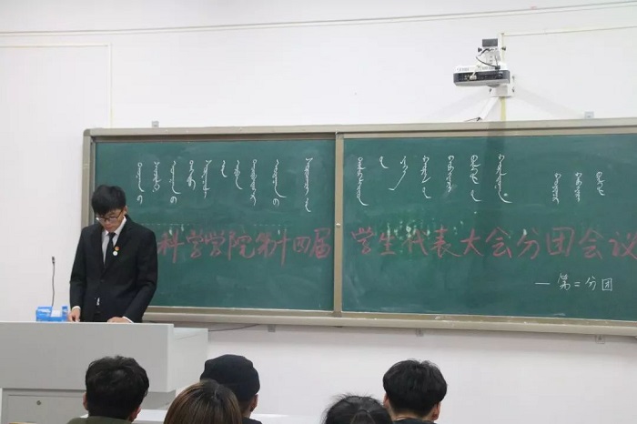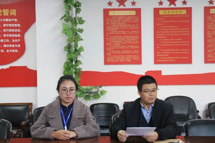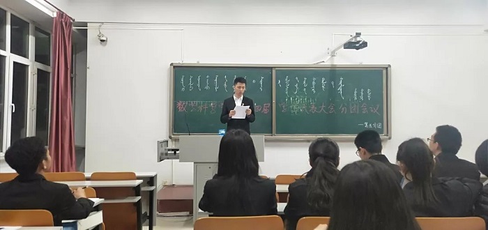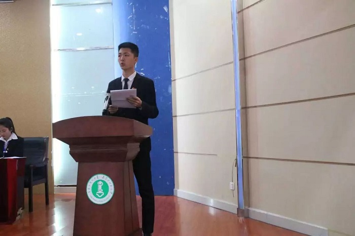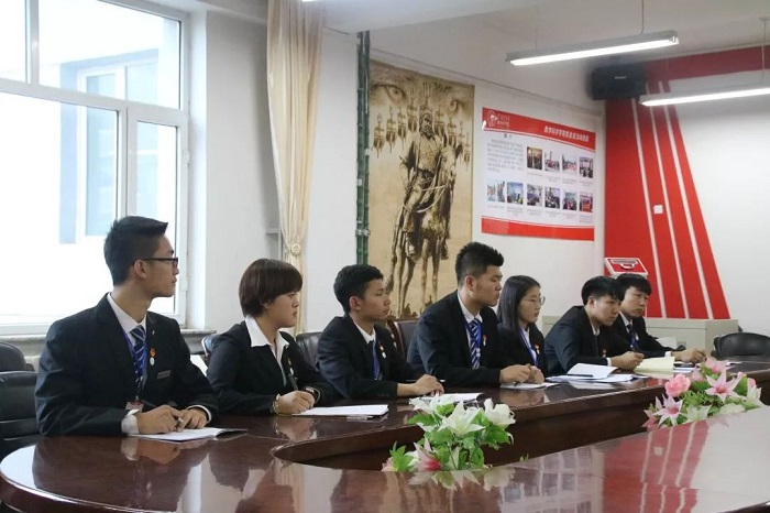 2018年11月24日下午18:00,由团总支书记皮建东老师主持的太阳成集团tyc122ccvip第十四届常务委员会第一次全体会议于公司楼二楼会议室召开。会议选举并宣布新一届员工会主席为王悠然,副主席为杨培森、吉雅、查和鲁拉。新一届员工会主席王悠然同学发言。