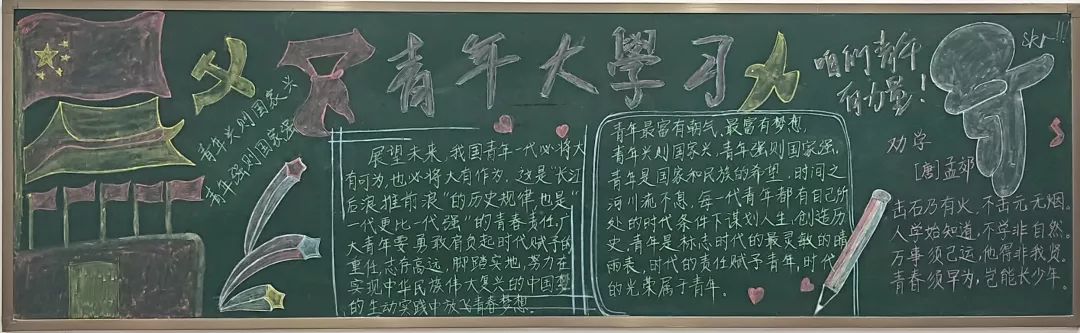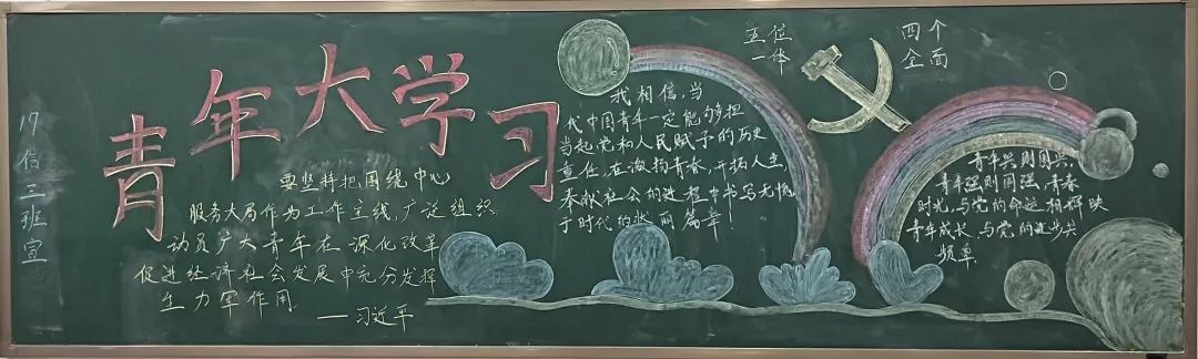 系列活动中,公司开展了板报宣传活动,同学们把对当代青年使命的认识融入到板报创作之中,以板报的形式表达自己对当代青年职责的认识。