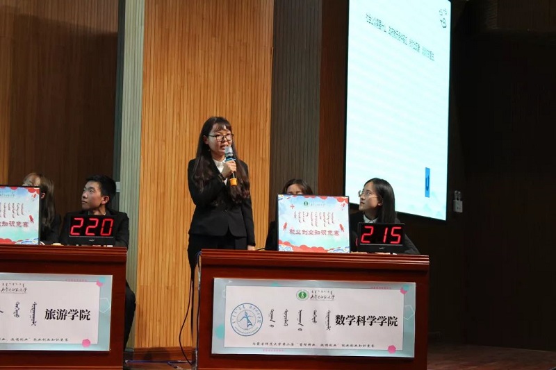 17级汉二班贾璐、17级汉二班孟昆令、18级统计班邢鉴玮代表公司参加比赛,她们在场上从容回答,展现自我。