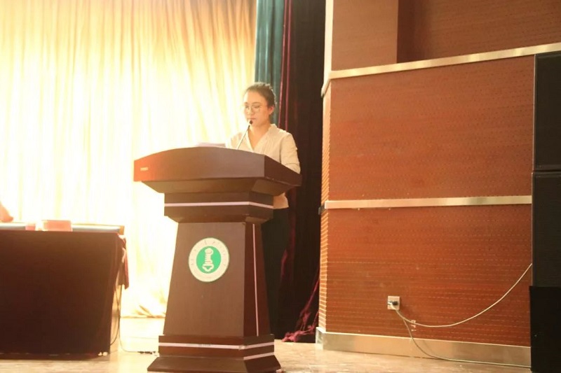 在校员工代表16级蒙班吉雅同学发言。吉雅同学建议各位同学正确处理学习和工作的关系,不断完善自我,全面发展,让老员工活更有意义。