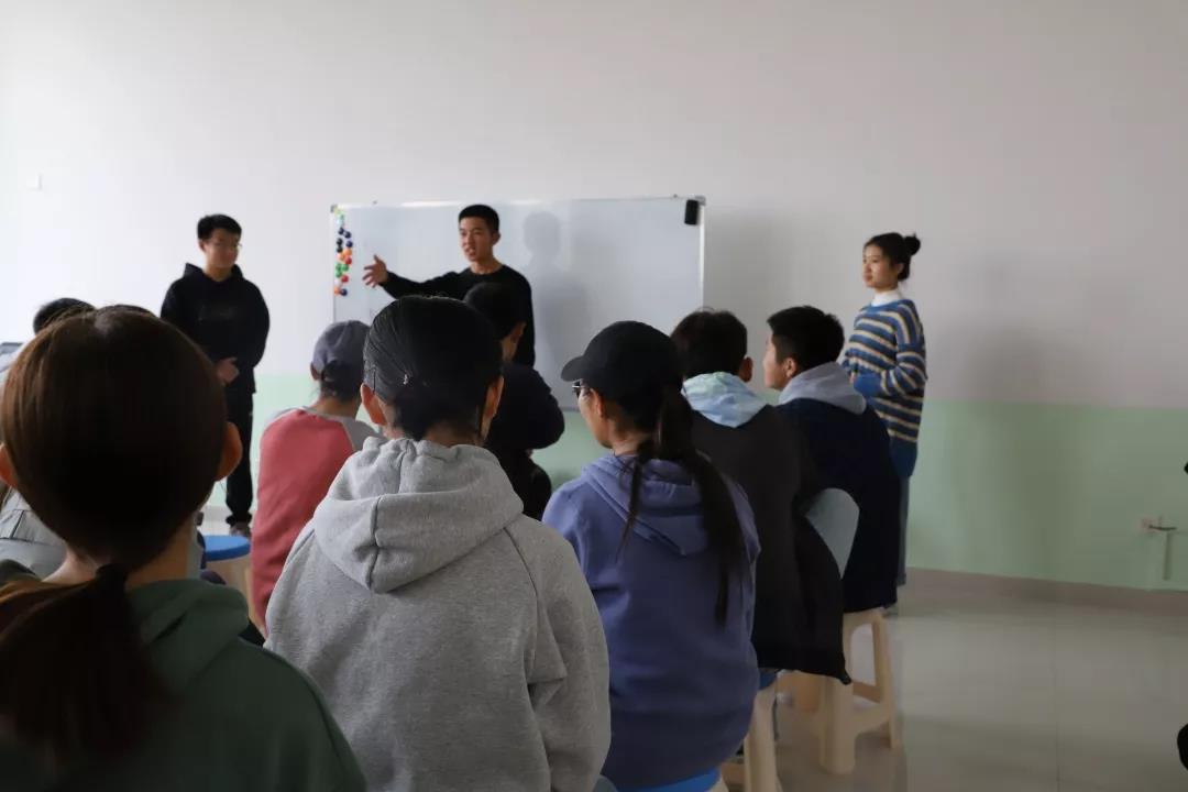 同学们随机分为六个组,以小组为单位,自行选出自己的组长,然后顺时针依次介绍自己(包括姓名,家乡,性格,爱好等),最后由组长总结发言介绍自己小组所有人员的基本情况。这个游戏让大家对彼此有了一份最基本的了解。