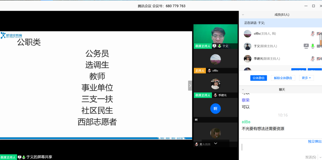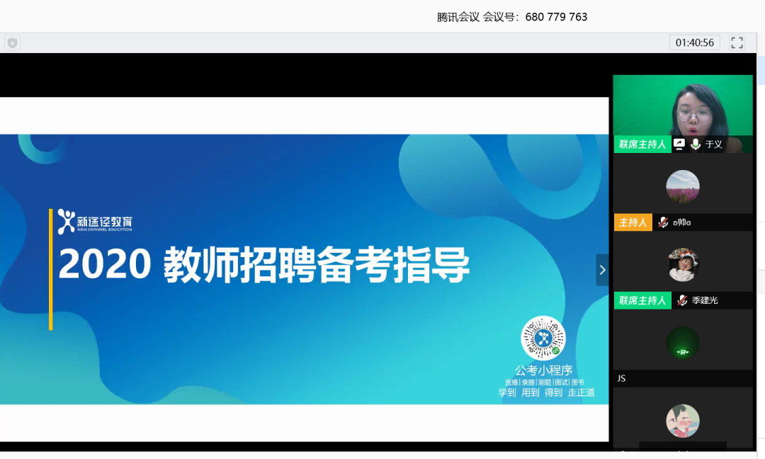 为帮助公司2020届毕业生解决在择业、就业过程中遇到的问题和困惑,太阳成集团tyc122ccvip特别邀请到新途径职业教育部部长于义老师、新途径教师招考研究院经理包娜娜老师于2020年4月19日为毕业生们进行线上就业指导讲座。公司党委副书记、副经理季建光老师,学就办负责人李帅老师、辅导员张惠清老师及2020届毕业生参加此次会议,会议由李帅老师主持。
