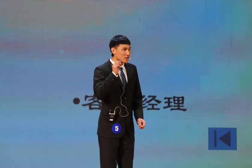 答题结束后,选手选择承办方提前拟定好的各评委所在企业的其中一个岗位即兴发挥模拟面试。邰心同学选择了兴业银行的客户经理一职,面对兴业银行代表人的单独问答,他从容不迫、言语幽默。