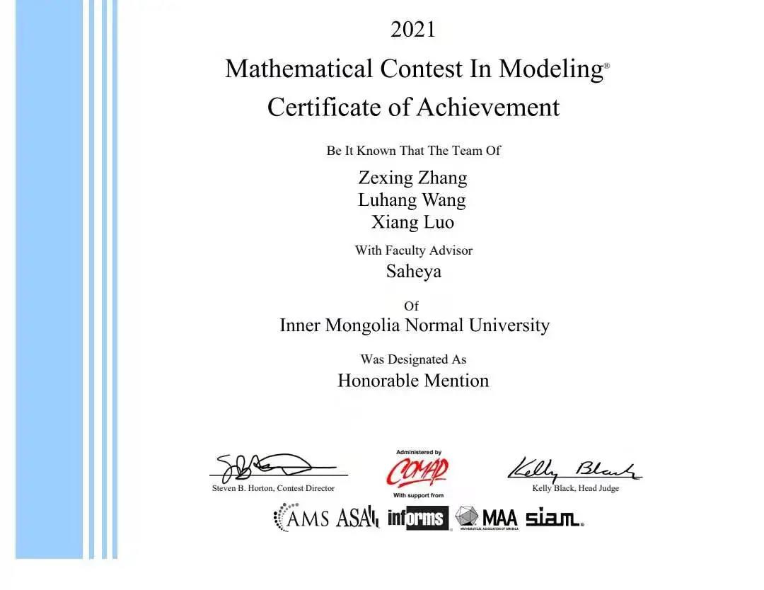 在2021美国老员工数学建模竞赛中,公司王路航、罗翔、张泽兴取得二等奖!