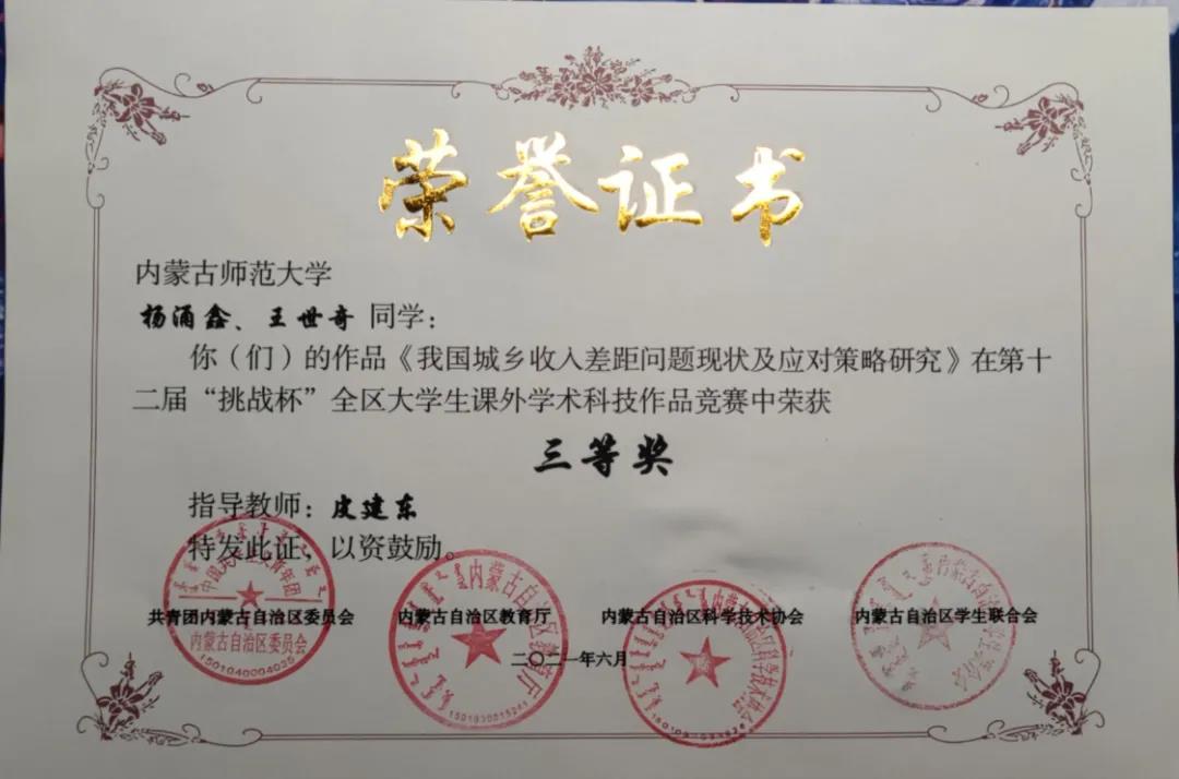 第十二届“挑战杯”全区老员工课外学术科技作品竞赛,公司同学取得二等奖一项,三等奖两项。