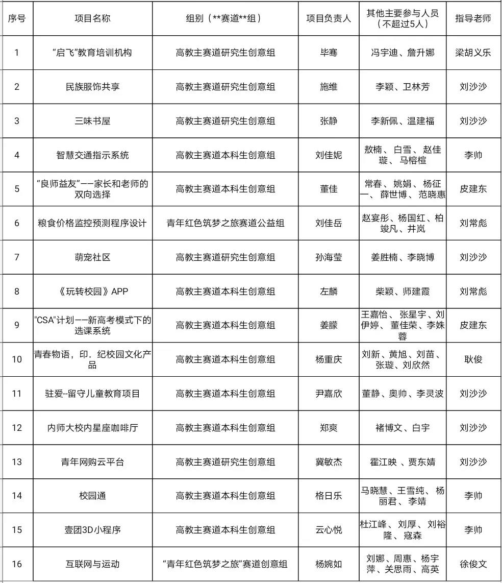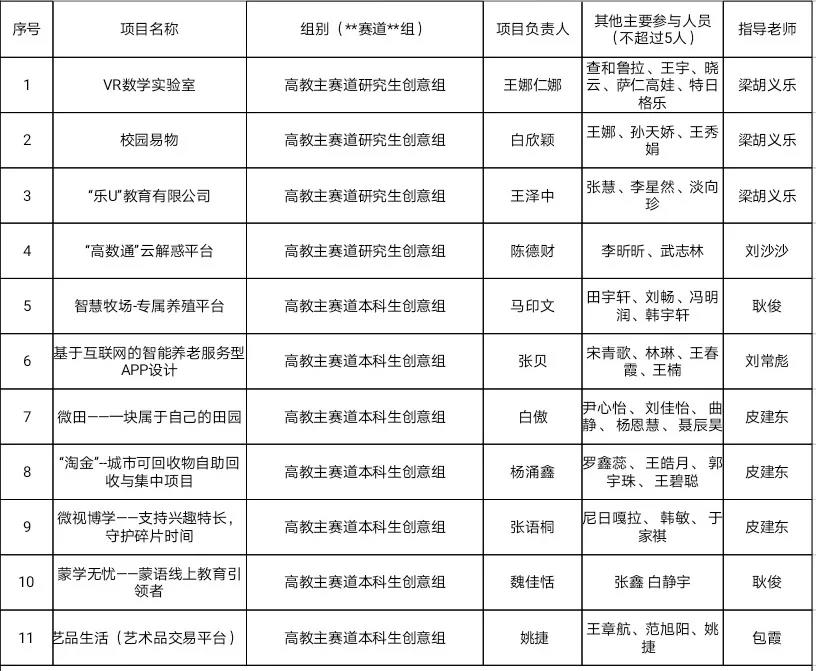第七届中国国际"互联网+"老员工创新创业大赛太阳成集团tyc122ccvip院赛初审名单: