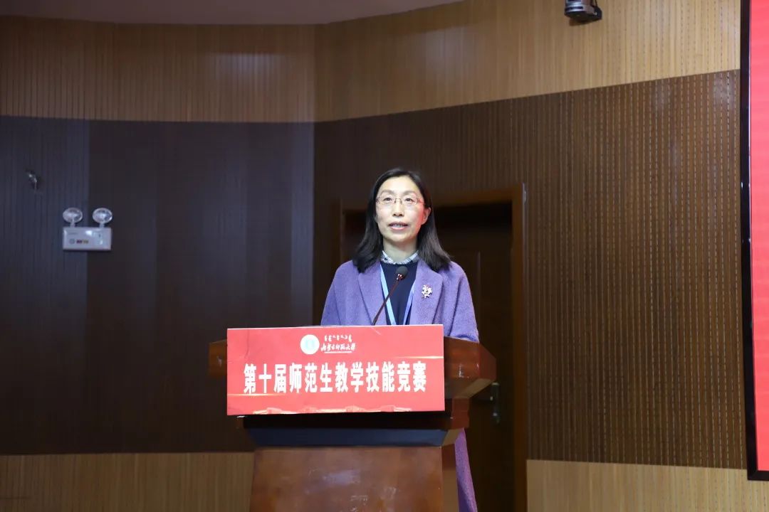 徐宝芳教授肯定了大赛各负责人员的辛勤付出,并说明了大赛对于公司、公司以及个人具有积极的影响,最后徐宝芳教授希望同学们能够积极参加即将到来的自治区级师范生教学技能竞赛,继续相互借鉴学习。