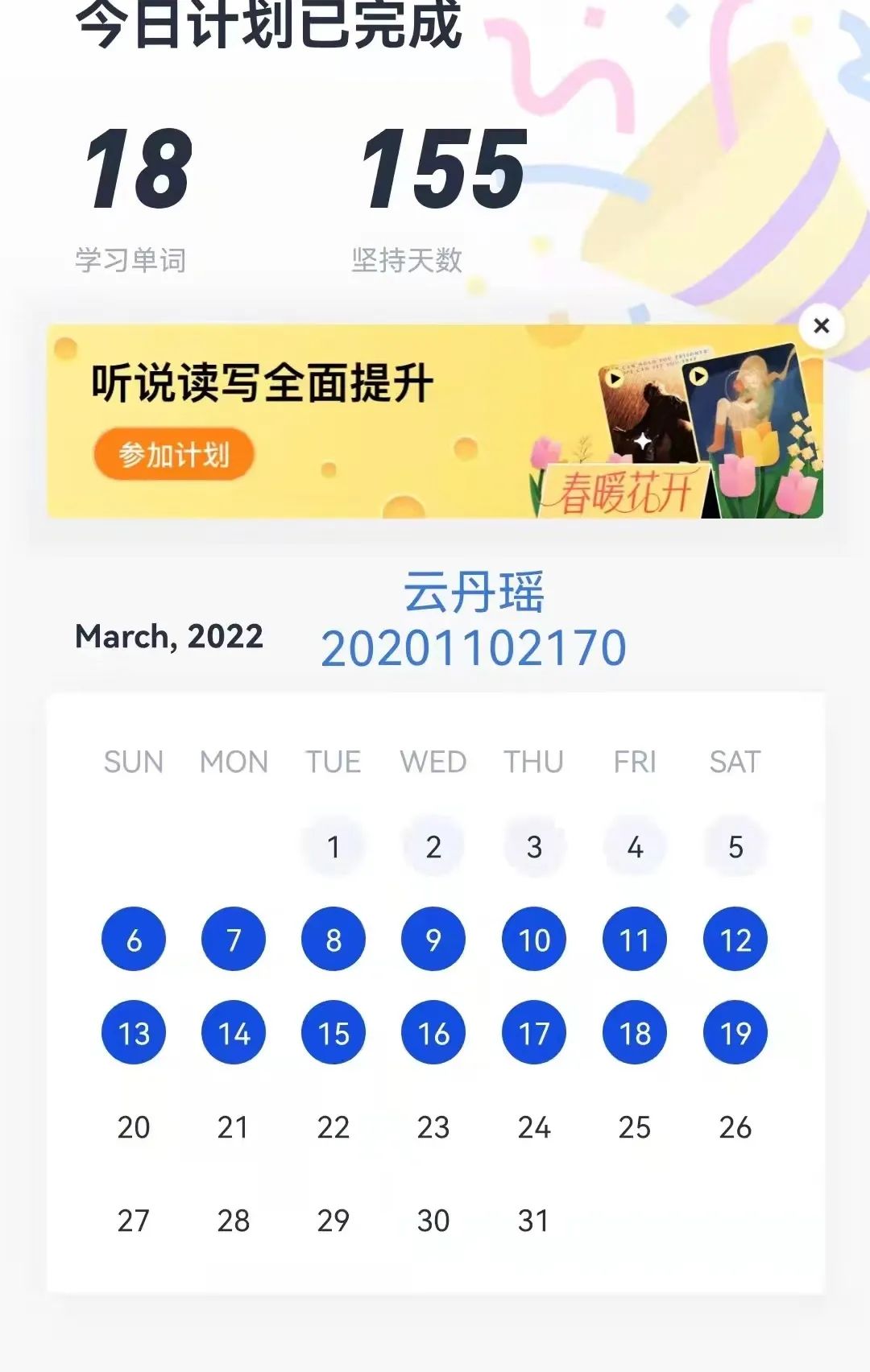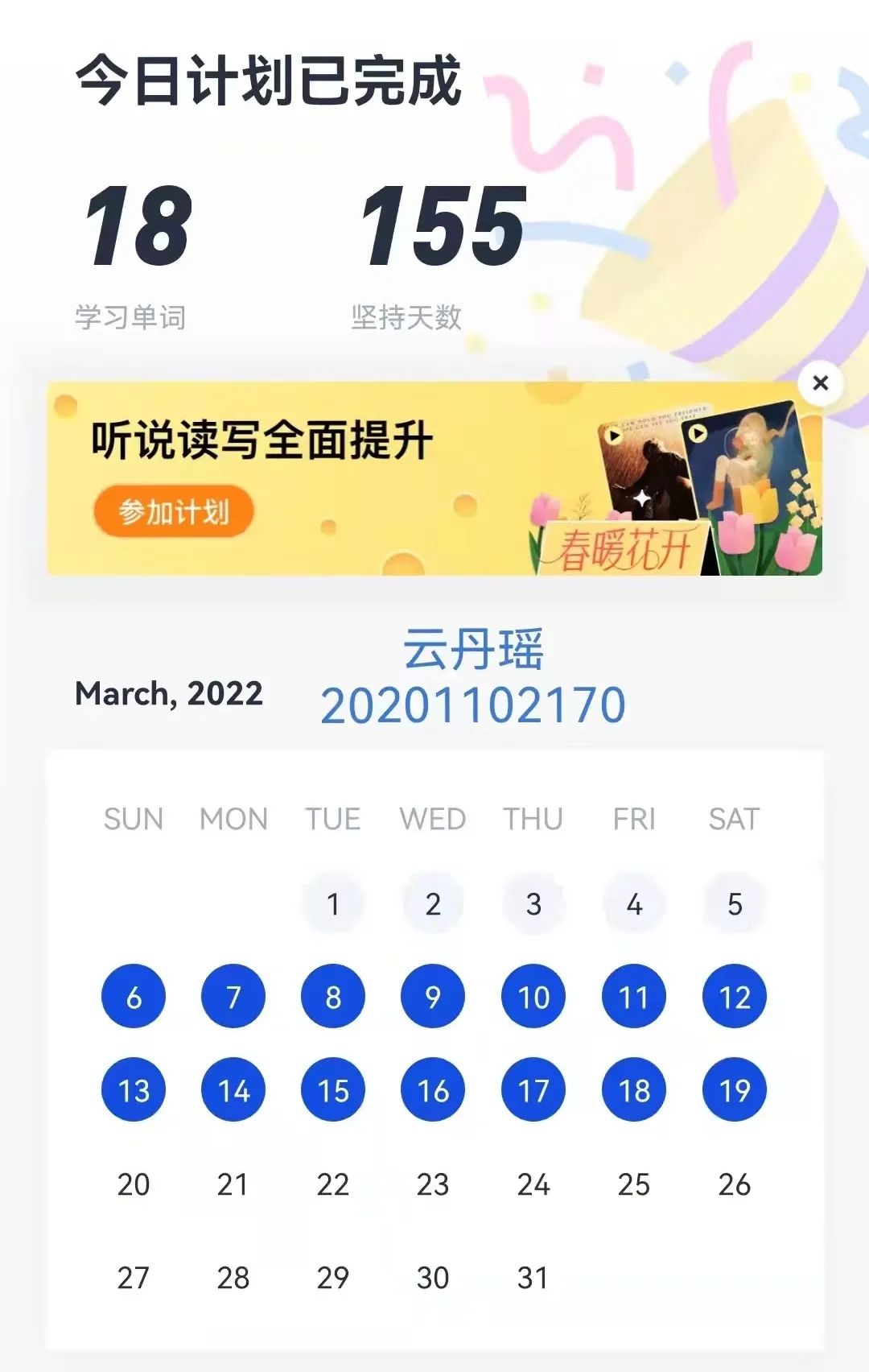 为了丰富员工的居家学习生活,提高员工的学习自觉性,太阳成集团tyc122ccvip开展了“学习解疫,提升有我”的英语单词打卡活动,150名员工积极响应活动,进行打卡学习。