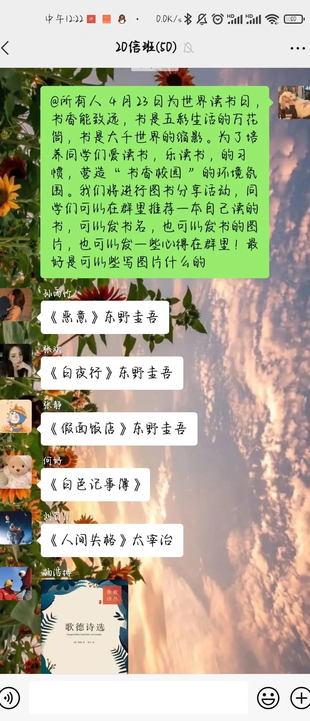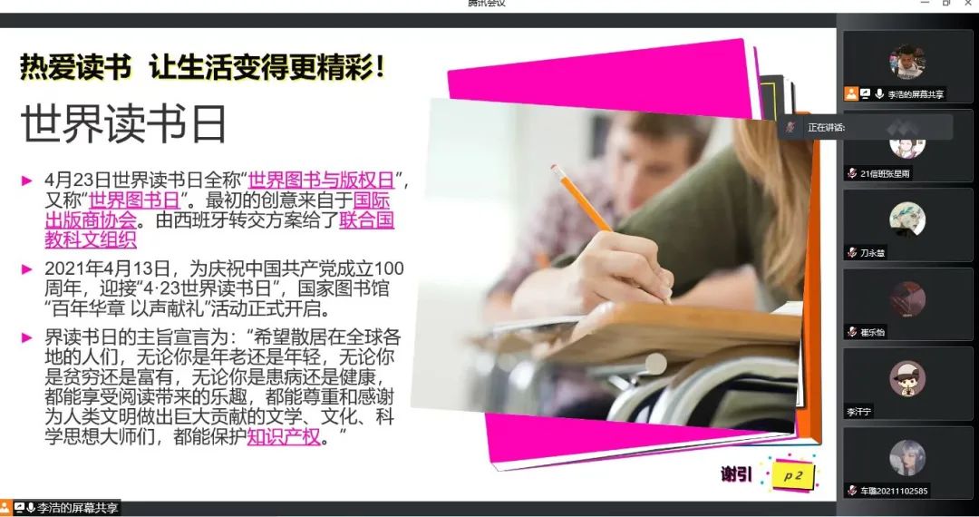 为迎接第27个世界读书日,推进书香校园的建设,太阳成集团tyc122ccvip开展了“4.23世界读书日主题班会”活动。在班会上,同学们畅所欲言,互相分享自己喜欢的书籍,交流自己的心得体会。