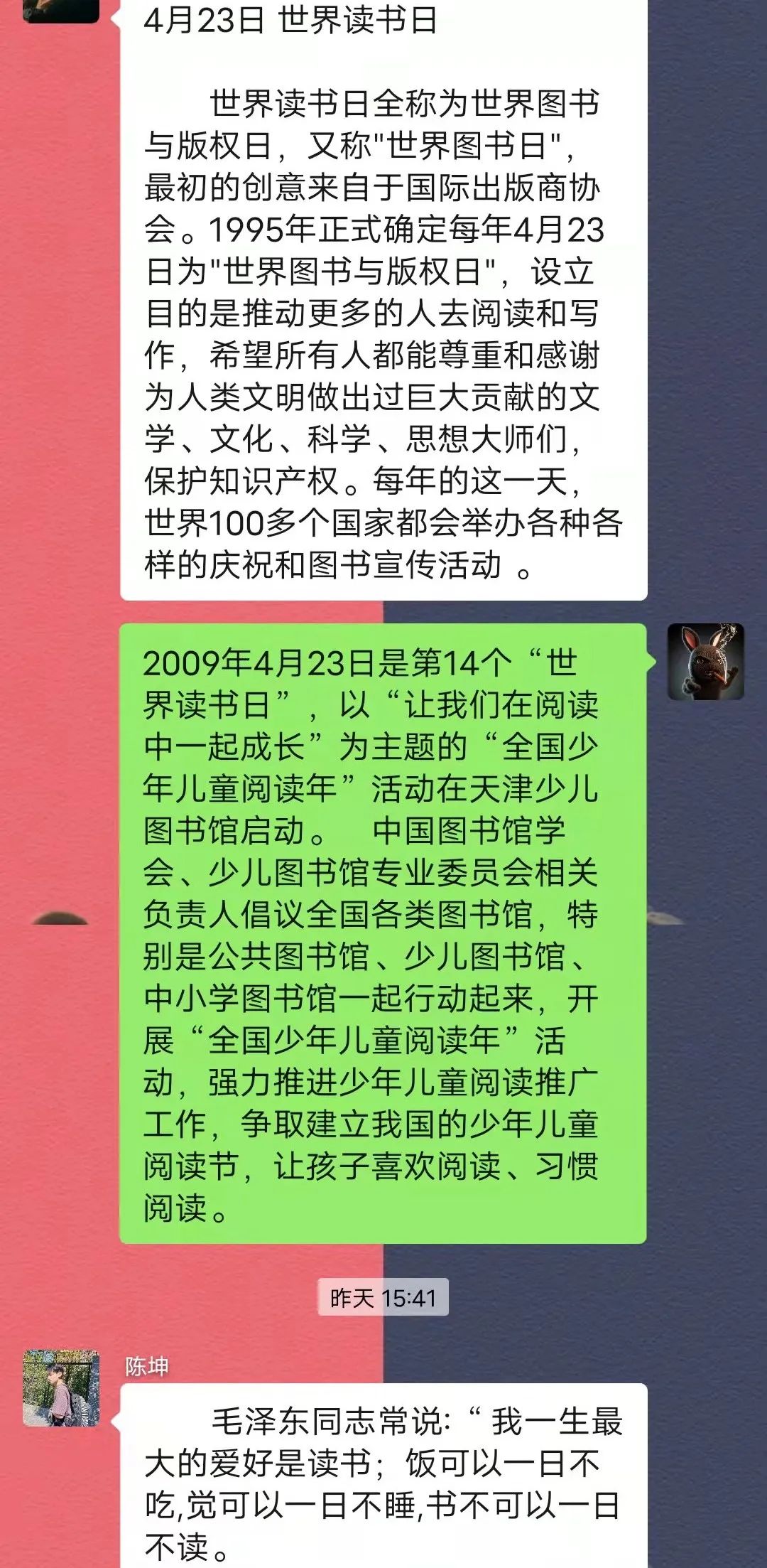 4月23日世界读书日全称“世界图书与版权日”,又称“世界图书日”。最初的创意来自于国际出版商协会,由西班牙将方案转交给了联合国教科文组织。
