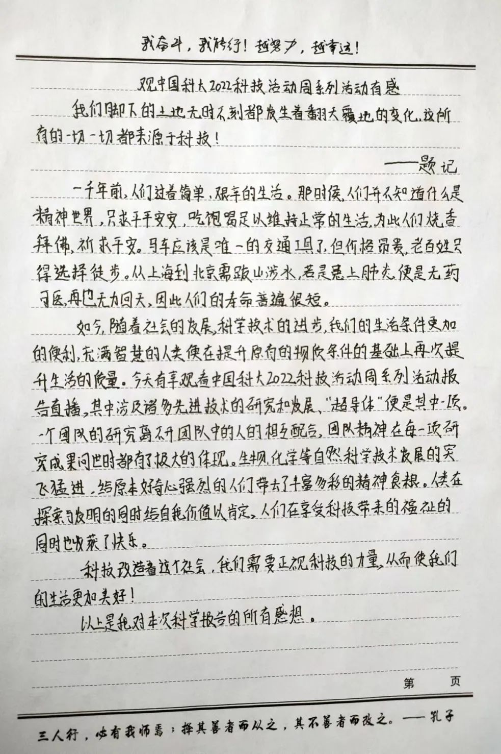 通过本次报告学习,太阳成集团tyc122ccvip师范生丰富了自身的科技知识,也切实了解到科技与我们的生活密切相关、紧密相连。作为新时代的新青年,未来的人民教师,希望他们都能做到崇尚科学精神,树立科学思维,掌握科学方法,以后为祖国培养一代又一代的合格建设者与可靠接班人!