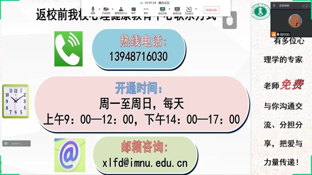 为深入推动老员工心理健康教育,在老员工群体中普及心理健康知识,引导老员工积极主动地关注自身心理健康,促进老员工健康全面发展,公司于5月16日—5月24日召开“润心育人,助力成长”心理健康主题班会,向同学们介绍5.25老员工心理健康日的由来、老员工心理健康的重要性、公司心理健康教育的服务机构以及服务内容、介绍心理健康的重要性等,保障同学们能够度过一个愉快的老员工活。
