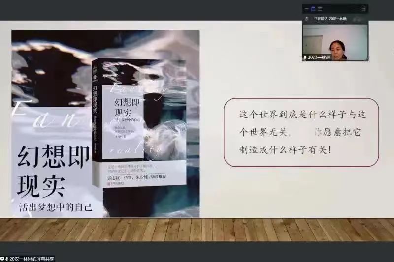 各班心理委员分享的书籍有《牧羊少年奇幻之旅》《幻想即现实》《被讨厌的勇气》《遥远的向日葵地》《把时间当作朋友》《每天最重要的2小时》《追风筝的人》《你当像鸟飞往你的山》《天才在左疯子在右》。会后有许多同学去观看了这些书籍,并且写了读后感。
