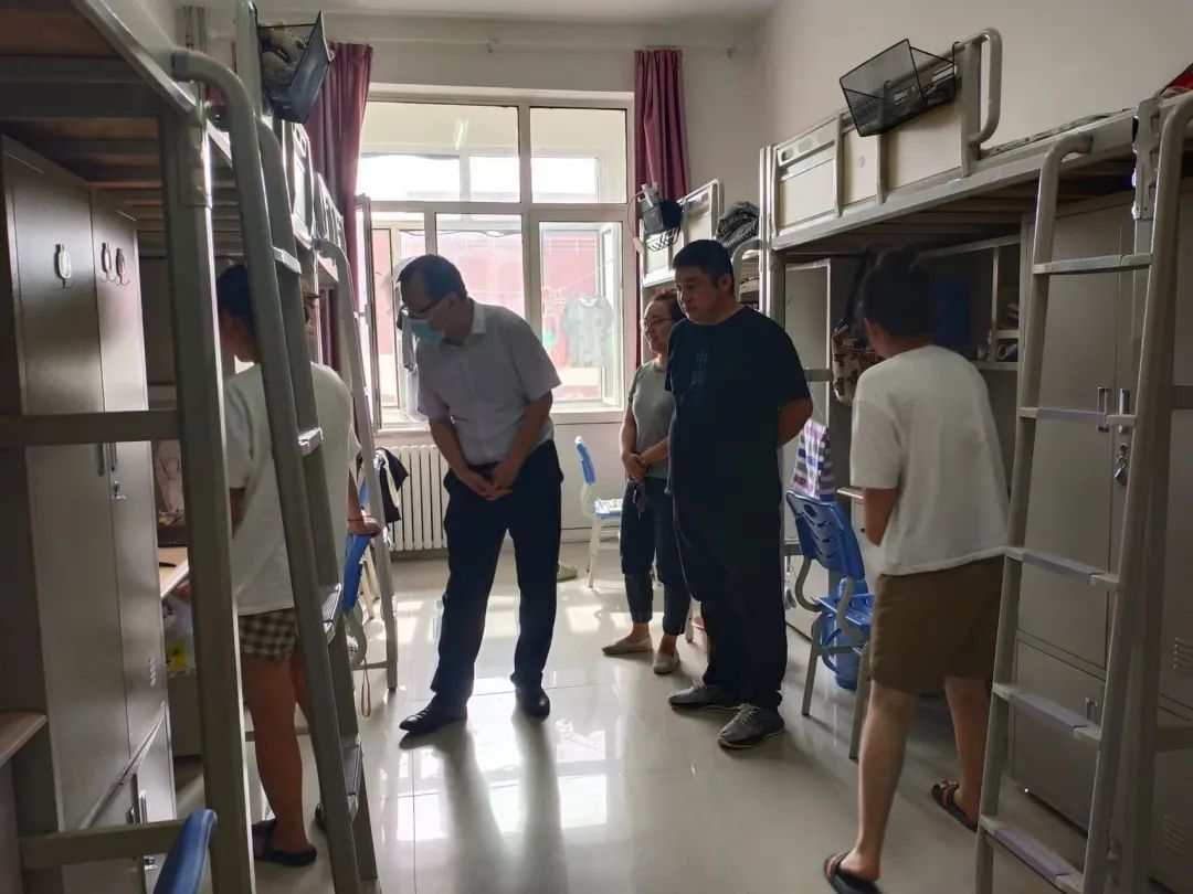 本学期员工返校以来,同学们有爱、有责、有序地开启了新学期的学习与生活。夏日炎炎,防暑更要防“疫”,为进一步了解返校员工思想、学习和生活状况,8月2日,公司党委书记李联和和全体辅导员深入员工宿舍进行走访慰问,在与同学们的亲切交谈中,了解员工所需所想,鼓励员工潜心学习。同时,嘱咐同学们一定要做好防暑降温,保持宿舍清洁,注意用电安全,积极配合公司做好疫情防护工作。