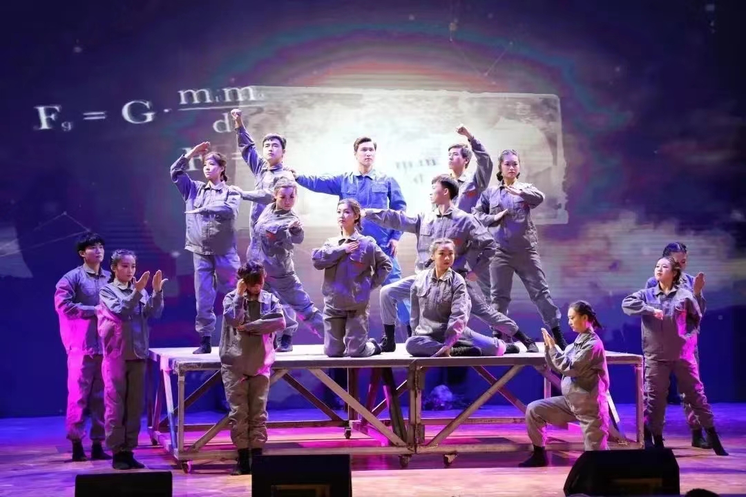 《马兰花魂》讲述了邓稼先等老一辈科技工作者们扎根基地默默奉献的感人事迹,讴歌了他们“舍小家、顾大家”的爱国情怀和“自强不息、厚德载物”的伟大精神,为了建设祖国,科学家们奔赴荒凉孤漠。为了科技进步、祖国强大,他们远离亲人、杳无音信……当原子弹终于成功发射的那一秒,当蘑菇云在天边远远升起的那一刻,默默盛开在戈壁的马兰花,恰似他们用最深的情为祖国和亲人唱出的无声的歌。而远方传来亲人的深情回应“我知道,你一定在祖国最需要的地方……”他们的足迹和精神也通过舞蹈这一载体直接而强烈的内化在了每一位舞蹈的学子身上。