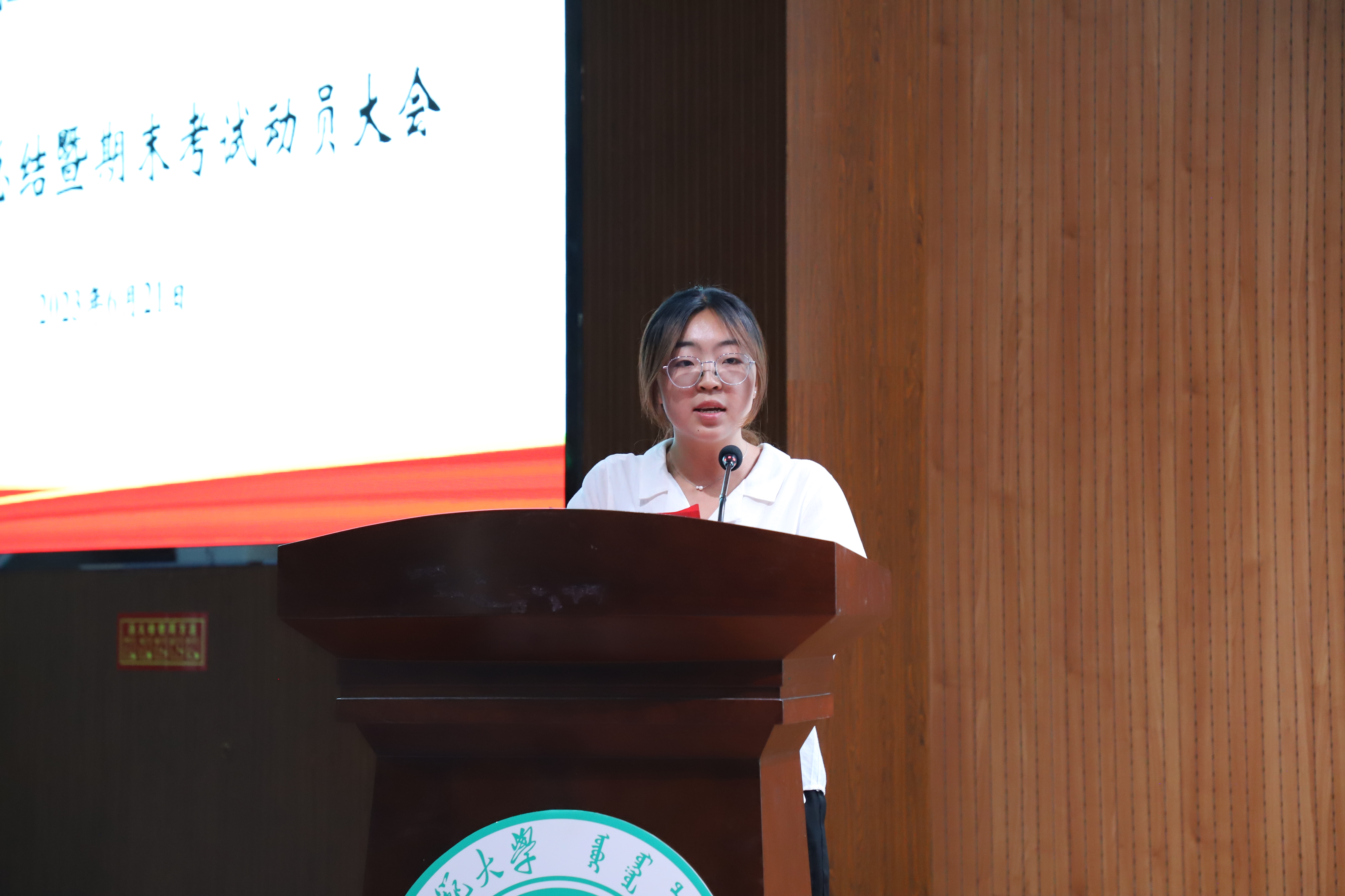 2023年6月21日晚七点,太阳成集团tyc122ccvip于图书馆二楼报告厅举行了公司2022—2023学年第二学期员工工作总结暨期末考试动员大会。出席本次会议的有公司经理扎其劳教授,公司党委副书记、副经理季建光老师,公司副经理包霞老师,团总支书记皮建东老师,员工工作辅导员萨如拉老师,员工工作辅导员阿茹罕老师,21级汉一班班主任李春兰老师,21级蒙班班主任乌日柴胡老师,21级汉四班班主任高兴华老师,21级信息班班主任赵学慧老师,22级一班班主任李璐老师,22级二班班主任郑佳璇老师,22级三班班主任苏日古嘎老师,22级四班班主任朱建波老师,22级五班班主任莘智老师,本次会议由员工工作与就业办公室副主任刘沙沙老师主持。