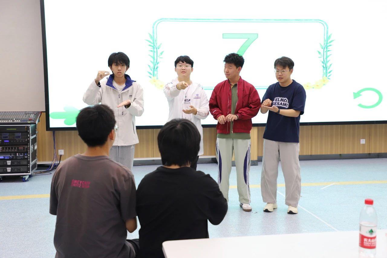 “你划我猜”环节更加考验宿舍成员间的默契与配合,各个队伍纷纷摩拳擦掌,跃跃欲试,进行默契大挑战。4名比划者站在舞台中央展开团队作战队形,用夸张的动作和表情诠释着卡片上的词语。2名猜词者们全神贯注地捕捉着比划者的每一个动作和表情。每当有人猜中词语,现场便爆发出热烈的掌声和欢呼声,让同学们感受到了团结的氛围和成功的喜悦。