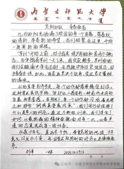 纸短情长,感悟仍在延续。愿同学们继续带着这份对军训的真切体会,在余下的训练里收获更多成长,让这些手写的心得,成为日后回望迷彩青春时,最温暖、最有力的回忆。