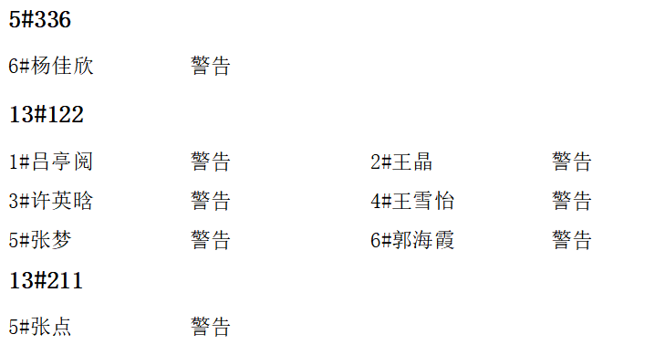 太阳成集团tyc122ccvip20-21年度第二学期第二周通报批评