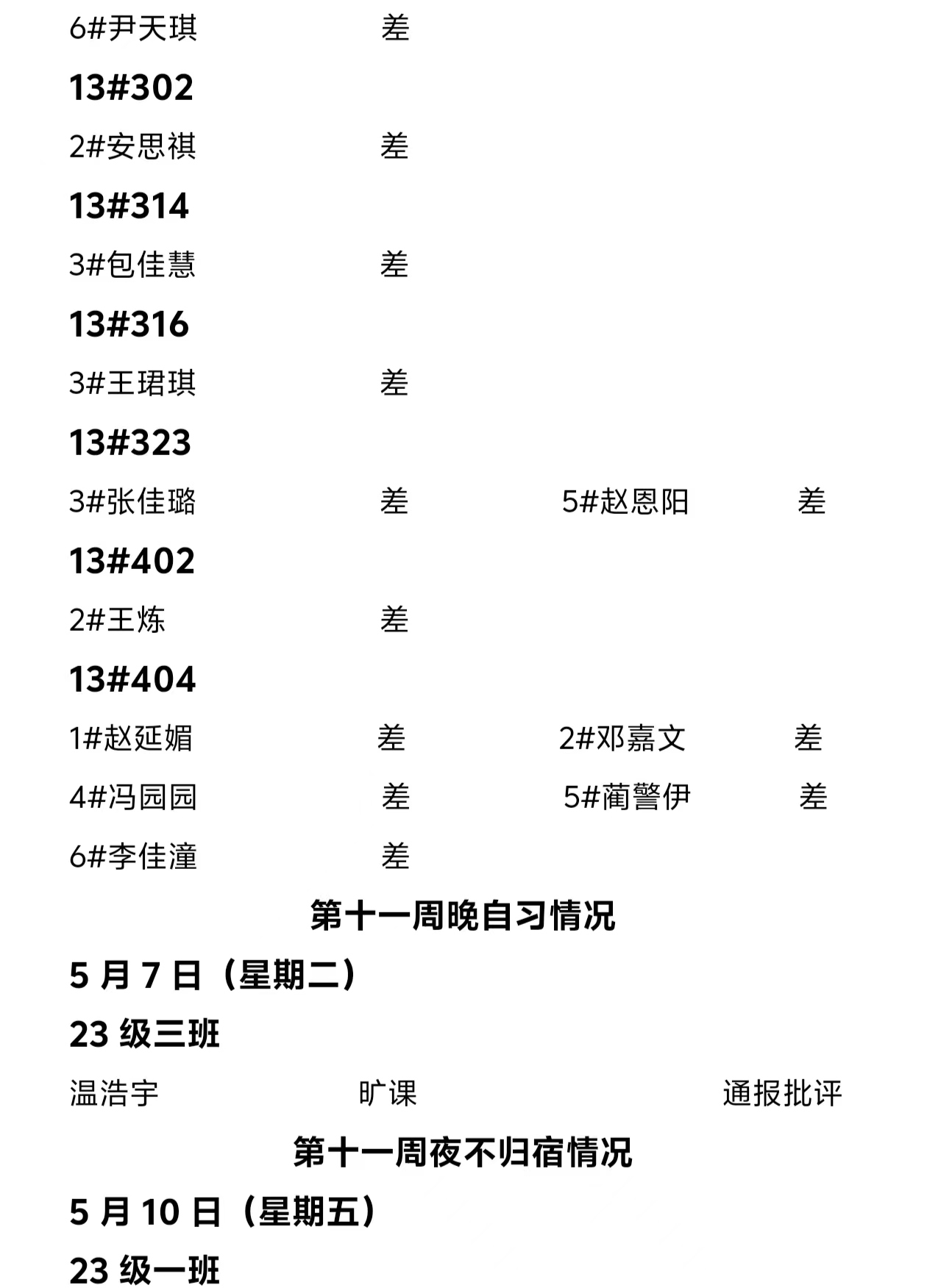 太阳成集团tyc122ccvip2023——2024年度第二学期第十一周通报情况