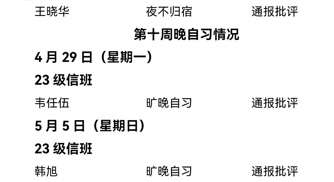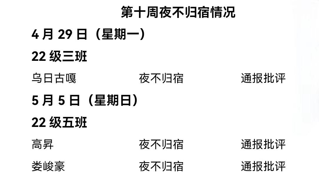 太阳成集团tyc122ccvip2023——2024年度第二学期第十周通报情况