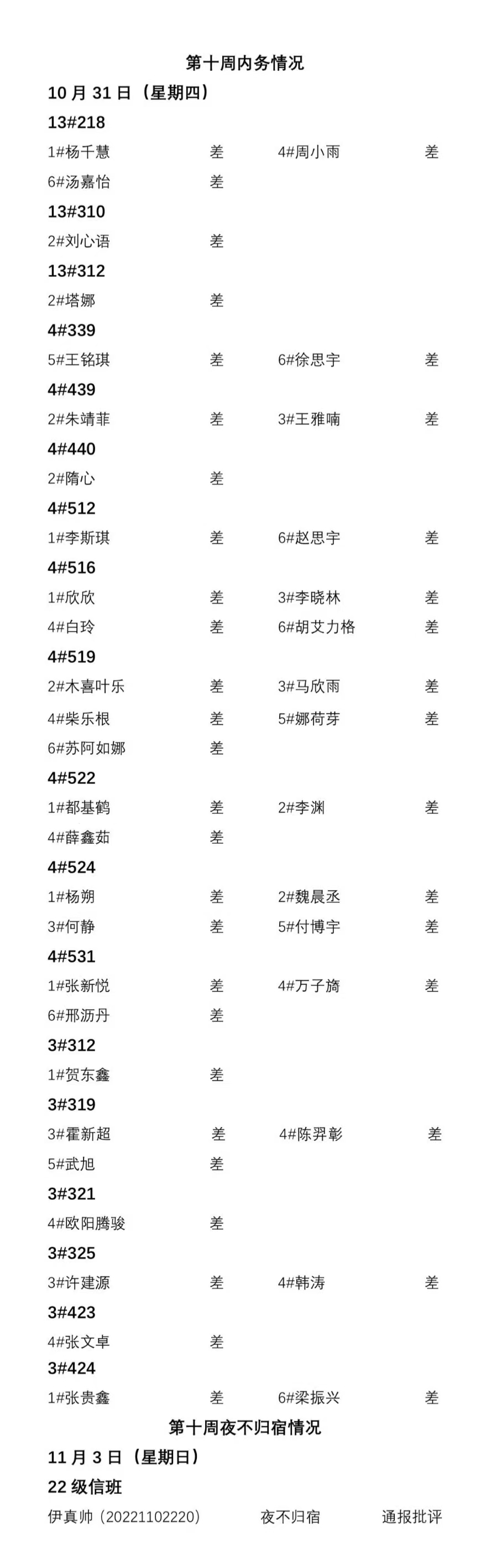 太阳成集团tyc122ccvip2024——2025年度第一学期第十周通报情况
