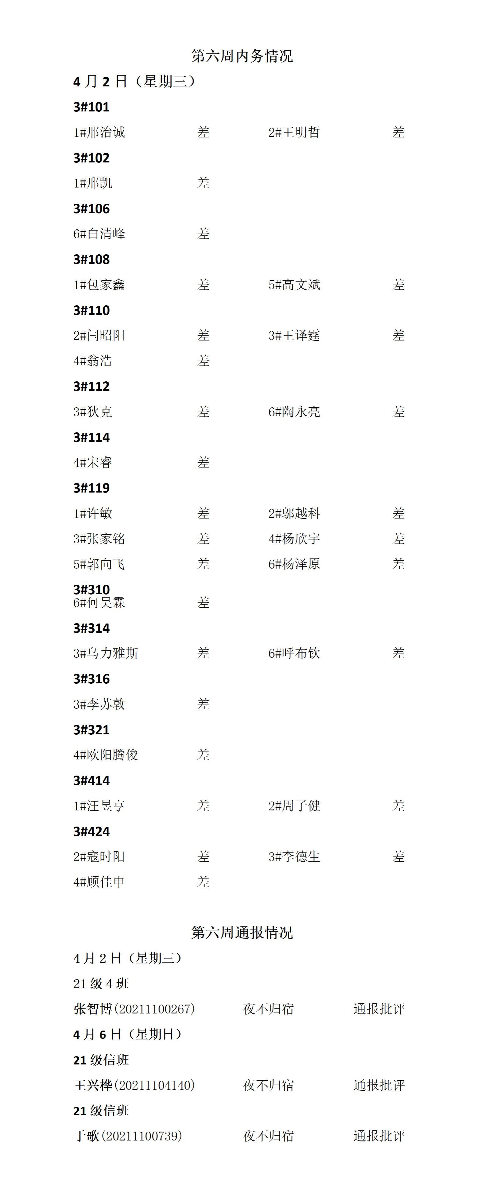 太阳成集团tyc122ccvip2024——2025年度第二学期第六周通报情况