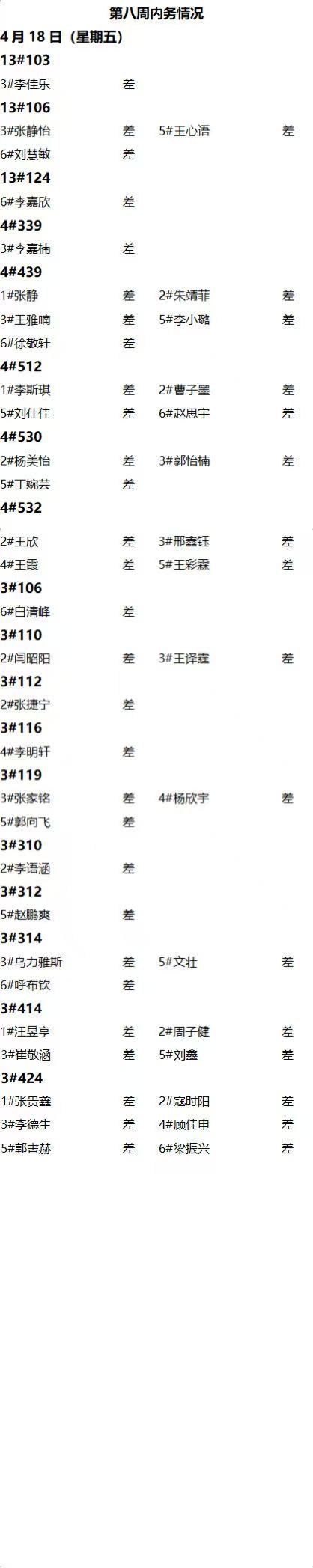 太阳成集团tyc122ccvip2024——2025年度第二学期第八周通报情况