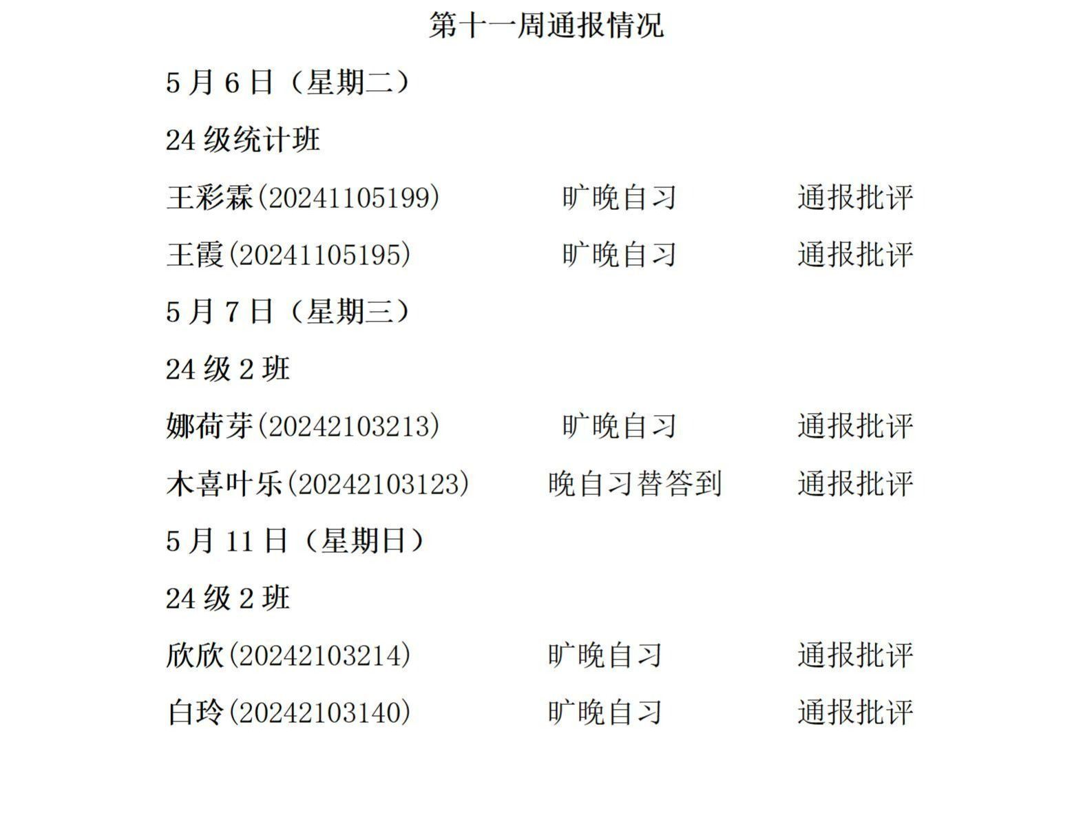 太阳成集团tyc122ccvip2024——2025年度第二学期第十一周通报情况