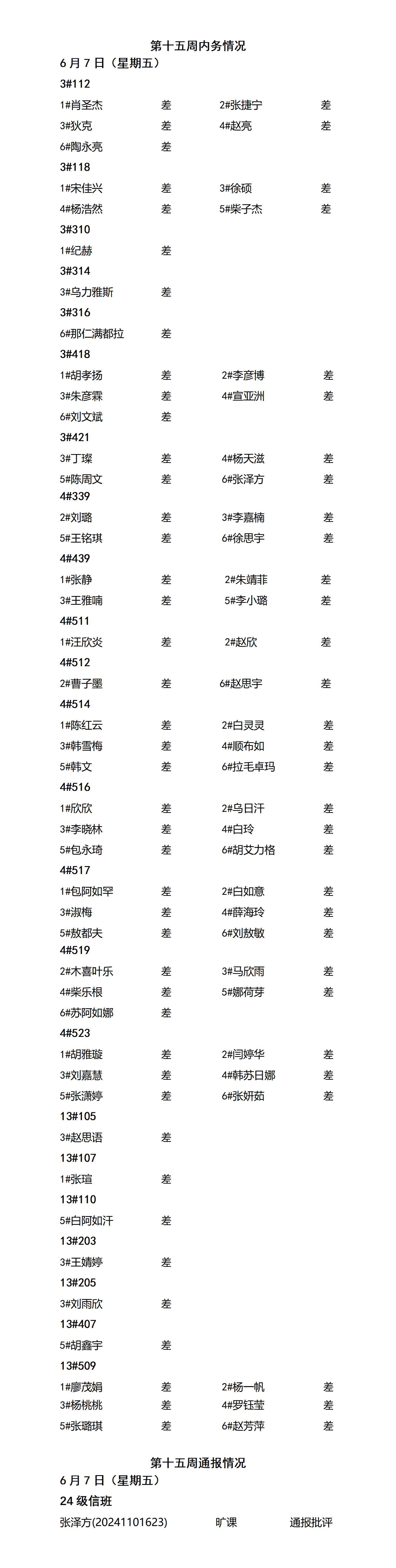 太阳成集团tyc122ccvip2024——2025年度第二学期第十五周通报情况