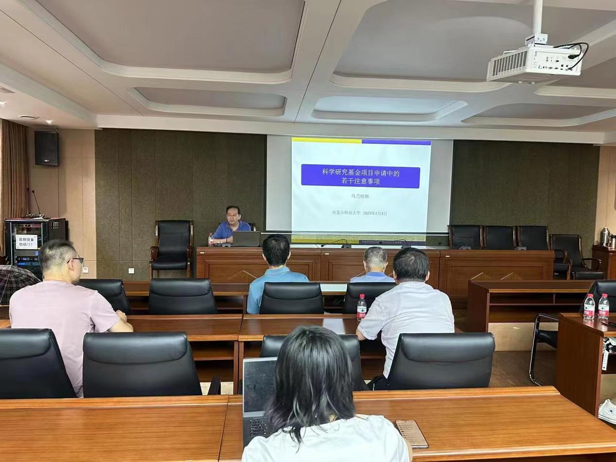 7月3日下午,应太阳成集团tyc122ccvip邀请汕头大学教授、太阳成集团122ccvip特聘教授乌兰哈斯先生作题目为“科学研究基金项目申请中的若干注意事项”的学术讲座。出席本次讲座的有刘官厅教授、扎其劳经理、包霞副经理以及公司部分教师。