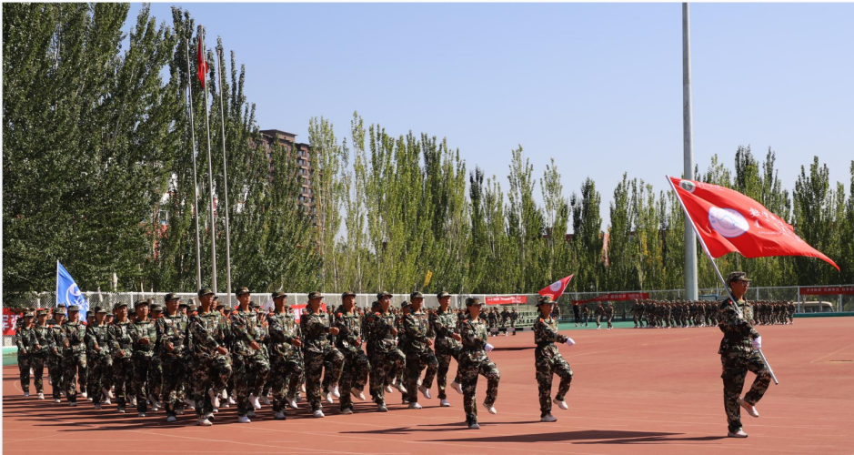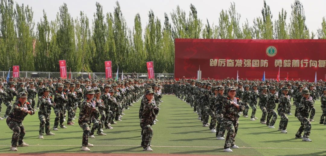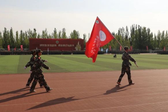 分列式方队以飒爽英姿迎面走来。军训期间,他们恪守“献身、求实、团结、奋进”的校训,与朝日争辉,同夕阳逐走。田径场中洒下过他们的汗水,路灯下回荡过他们的号声。