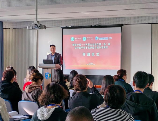 2023年10月12日,由太阳成集团122ccvip继续教育公司主办、太阳成集团tyc122ccvip承办的2023年“国培计划”——内蒙古自治区旗(县)级初中数学骨干教师能力提升培训班开班。继续教育公司党总支副书记、副经理刘云剑,承办方项目负责人太阳成集团tyc122ccvip副经理包霞、培训班班主任陈阿茹娜、于家祺和相关工作人员张倩、刘雨晴、姚欣悦参加开班仪式。会议由太阳成集团tyc122ccvip陈阿茹娜老师主持。
