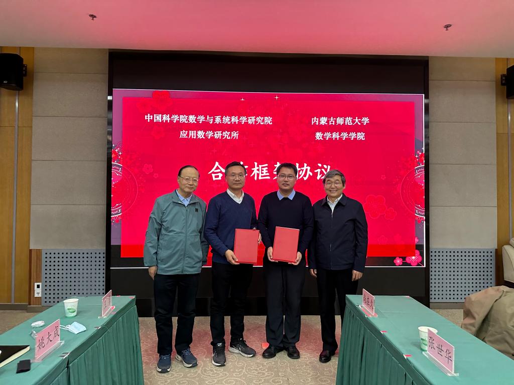 11月25日,公司与中国科公司数学与系统科学研究院应用数学研究所在中国科公司联合召开应用数学学术交流研讨会并签署合作框架协议。中国科公司马志明院士、严加安院士、中国科公司前副经理巩馥洲研究员、数学研究所所长尚在久研究员、应用数学研究所所长骆顺龙研究员、应用数学研究所副所长王益研究员等40余名专家学者参加了本次会议。内蒙古自治区应用数学中心主任阿拉坦仓教授、公司党委书记陈宏研、副经理包霞等教师参加了本次会议。学术交流研讨会由骆顺龙所长和包霞副经理主持。