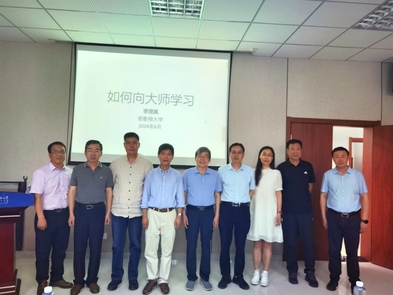 6月13日下午,无穷维哈密顿系统及其算法应用教育部重点实验室、教育部数学与应用数学专业虚拟教研室、内蒙古应用数学中心系列讲座在公司赛罕校区文史楼339学术报告厅举行。著名华人数学家、美国密西根大学教授、清华大学丘成桐数学科学中心兼职教授季理真教授应邀作了题为“如何向大师学习”的学术报告。公司原党委书记、内蒙古应用数学中心主任阿拉坦仓教授,科学技术史研究院郭世荣教授、代钦教授和原研究生院经理刘官厅教授及公司师生90余人聆听了本次报告。报告由包霞副经理主持。