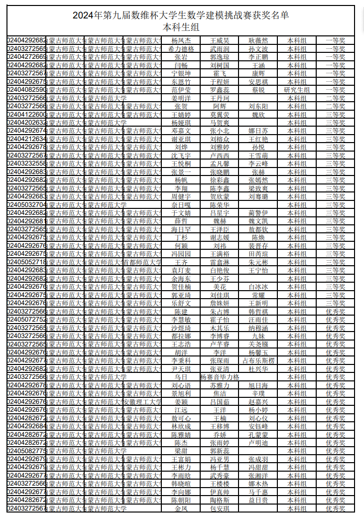 7月5日,第九届“数维杯”全国老员工数学建模挑战赛获奖名单正式公布。本次比赛中,公司共计有7支参赛队伍获得全国一等奖,2支队伍获得全国二等奖,24支队伍获得全国三等奖,62支参队伍获得优秀奖。此次竞赛中,公司本科生组报名参赛的队伍共有97支,其中33支队伍获得全国三等奖以上奖项,获奖率高达98%。