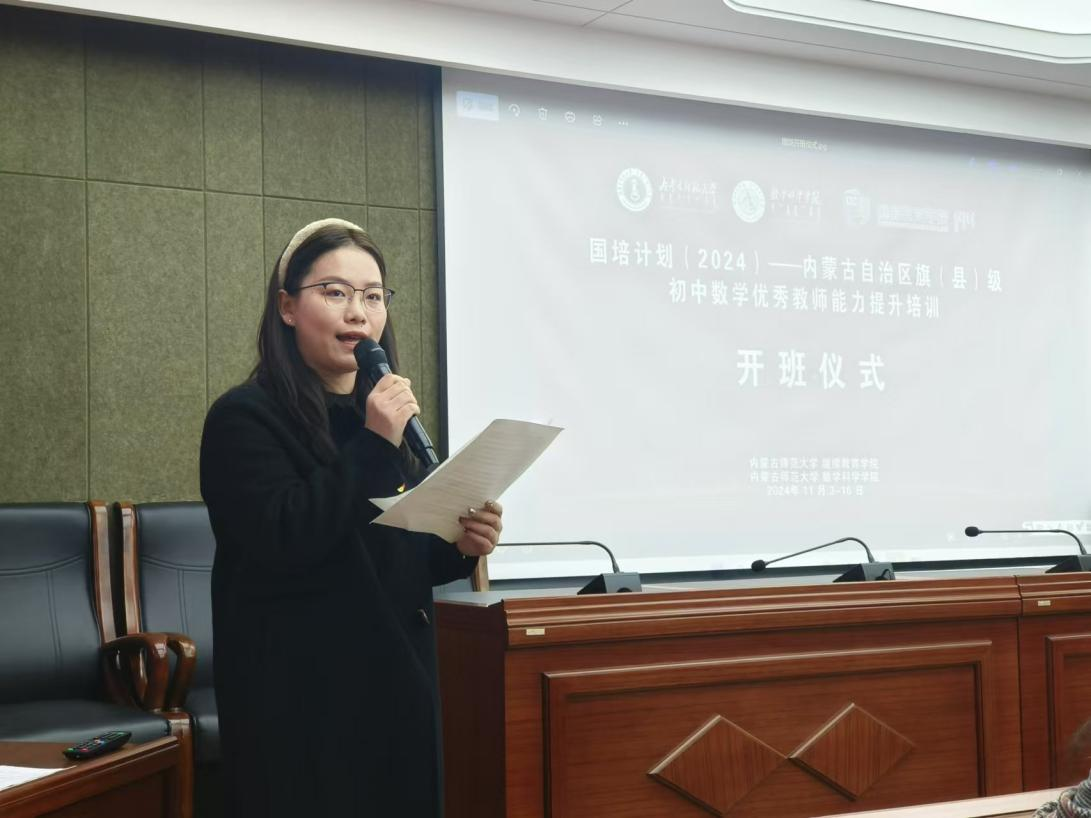 11月4日,由太阳成集团122ccvip继续教育公司主办、太阳成集团tyc122ccvip承办的2024年“国培计划”——内蒙古自治区旗(县)级初中数学优秀教师能力提升培训班正式开班。公司党委书记张伟、副经理萨和雅、华东师范大学太阳成集团tyc122ccvip鲍建生教授、太阳成集团122ccvip科学技术史研究院代钦教授、太阳成集团tyc122ccvip李春兰教授、班主任老师陈阿茹娜、郑佳璇以及培训班全体学员参加了开班仪式。会议由太阳成集团tyc122ccvip郑佳璇博士主持。