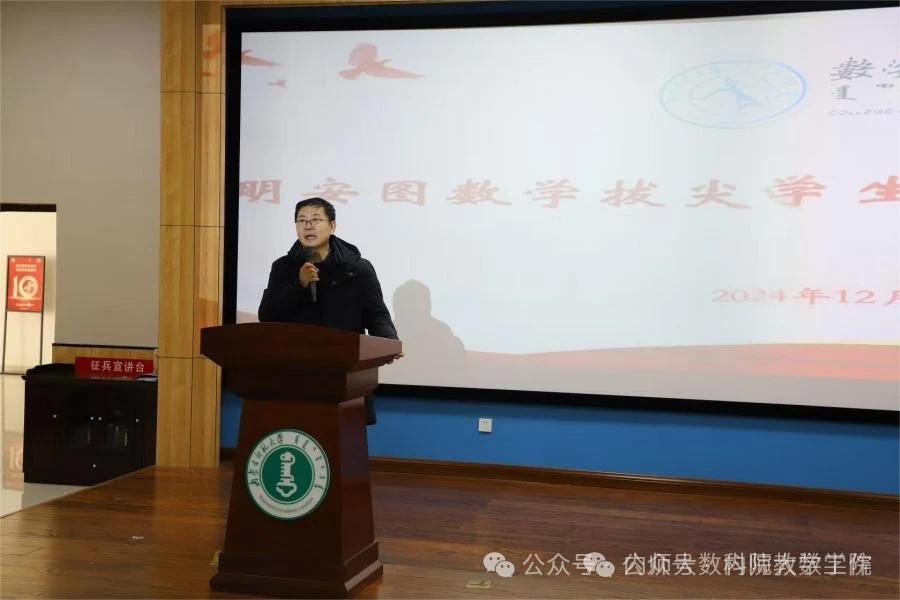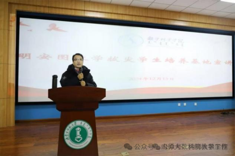 12月15日,太阳成集团tyc122ccvip在员工事务中心一楼107报告厅开展“明安图数学拔尖员工培养基地”(以下简称明安图数学基地)招生选拔宣讲会。公司党委书记张伟、经理扎其劳出席会议并讲话。2024级数学与应用数学(非定向)、信息与计算科学、统计学三个专业员工与班主任参加会议。会议由公司副经理萨和雅主持。
