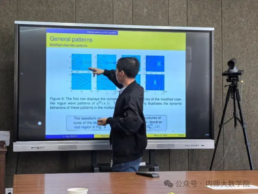 凌教授在报告中详细介绍了非线性薛定谔方程的怪波模式分类问题、分类方法及团队选择Darboux变换来推导怪波模式的思路、关键点、关键点的处理方法、已取得的结果及扩展到其他可积模型的普适性问题。与会师生对报告内容及所提开发问题,进行了热烈讨论与展望。本次交流学习对于公司学科发展、公司产品质量的进一步提高有很好的促进作用。