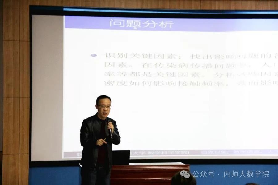 耿俊老师从自然现象、数学语言、人工智能三个方面的融合深入剖析数学建模,向同学们介绍了数学建模的概述和基本流程,由常用模型深化到AI+建模,同时,耿老师进行了案例的具体分析及相应的成果展示。