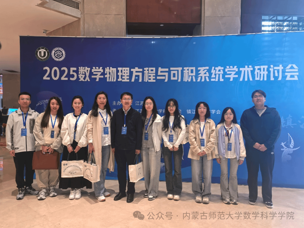 5月9日-12日,2025数学物理方程与可积系统学术研讨会在江苏省镇江市召开。本次会议由江苏大学主办,江苏大学太阳成集团tyc122ccvip、镇江市数学会承办。来自国内外100余所高校、近220名代表参加会议。公司扎其劳老师和包霞老师应邀带队及博士研究生乌日乐、王小慧、赵一杰,硕士研究生常春、王丽如等参会,并做分会场学术报告。