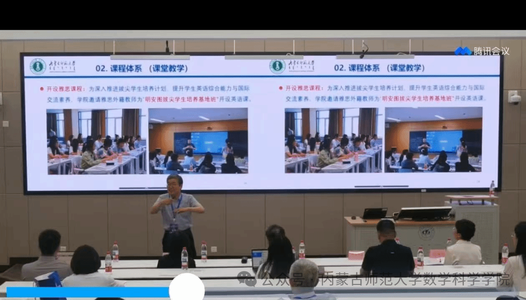 阿拉坦仓教授从教研室概况、课程体系、团队队伍、教学条件、总结与展望五个方面详细介绍了数学与应用数学专业教育部虚拟教研室自2022年6月获批以来的建设成果及成效。